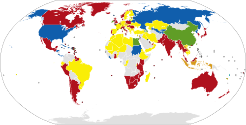 - Argentina, Australia, Bahamas, Barbados, Belgium, Canada, Denmark (Post Danmark), Gibraltar, Greece (express post), Greenland, Hungary, Iceland, India, Isle of Man, Israel, Italy (domestic post), South Korea, Japan, Jersey, Macau, Malaysia, Malta, Mauritius, Mexico, Monaco, Netherlands – surviving heritage and PTT boxes, New Zealand, Norway (national and international mail), Pakistan, Poland, Portugal, Romania, Spain (express mail), South Africa, Sri Lanka, Taiwan (airmail and prompt delivery), Thailand, Uganda (Posta Uganda), United Kingdom[34]
