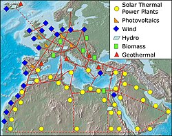 - ^ Cooper, Christopher; Sovacool, Benjamin K. (February 2013). "Miracle or mirage? The promise and peril of desert energy part 1". Renewable Energy. 50: 628–636. Bibcode:2013REne...50..628C. doi:10.1016/j.renene.2012.07.027.