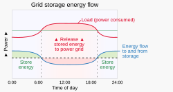 Grid energy storage (also called large-scale energy storage) is a collection of methods used for energy storage on a large scale within an electrical power grid. Electrical energy is stored during times when electricity is plentiful and inexpensive (especially from intermittent power sources such as renewable electricity from wind power, tidal power and solar power) or when demand is low, and later power is generated when demand is high, and electricity prices tend to be higher.