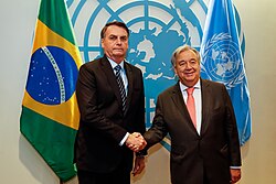 [edit]The Bolsonaro administration declared on 12 January 2019, that it recognized Juan Guaidó, the acting president of Venezuela appointed by the National Assembly, as the legitimate president of Venezuela amidst the Venezuelan presidential crisis.[240]
