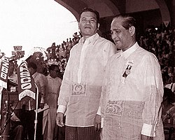 [edit]A new Constitution ratified on January 17, 1973,[84] under the rule of Ferdinand Marcos introduced a parliamentary-style government.[85] Marcos instituted himself as prime minister while serving as president in 1978.[86] Marcos later appointed César Virata as prime minister in 1981, although, he was only a figurehead as the government control was still with Marcos.[87]