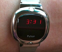 In 1970, Pulsar was a brand of the American Hamilton Watch Company which first announced that it was making and bringing the LED watch to market. It was developed jointly by American companies Hamilton and Electro/Data Inc. In the spring of 1972,[1][2] the first Pulsar watch was marketed by Hamilton Watch (the parent company, not the Hamilton Watch Division). With an 18-carat gold case, the world's first all-electronic digital watch was also the first to use a digital display created with light-emitting diodes (LEDs).[3] A button was pressed to display the time. The first Pulsar initially sold for $2,100 ($16,300 in 2024 dollars). In October 1972, the Potpourri segment in the issue of Playboy mentioned the first Pulsar, and included a photo. The Hamilton Pulsar P2 2900 was featured in the 1973 James Bond movie "Live and Let Die".[4] In 1975, a digital Pulsar with a built-in calculator was released.[5] In 1978, Seiko Corporation acquired the Pulsar brand, it is mid-grade of their product range. By 2020, Seiko had ceased selling its Pulsar in the United Kingdom.[6]