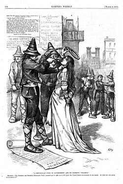 [edit]By 1866, the faction of Radical Republicans led by Representative Thaddeus Stevens and Senator Charles Sumner were convinced that Johnson's Southern appointees were disloyal to the Union, hostile to loyal Unionists, and enemies of the Freedmen. Radicals used as evidence outbreaks of mob violence against Black people, such as the Memphis riots of 1866 and the New Orleans massacre of 1866. Radical Republicans demanded a prompt and strong federal response to protect freedmen and curb Southern racism.[46]
