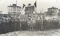 [edit]The Republican People's Party has its origins in the resistance organizations, known as Defence of Rights Associations, created in the immediate aftermath of World War I in the Turkish War of Independence. In the Sivas Congress, Mustafa Kemal Pasha (Atatürk) and his colleagues united the Defence of Rights Associations into the Association for the Defence of National Rights of Anatolia and Rumelia (Anadolu ve Rumeli Müdâfaa-i Hukuk Cemiyeti) (A–RMHC), and called for elections in the Ottoman Empire to elect representatives associated with the organization. Most members of the A–RMHC were previously associated with the Committee of Union and Progress.[17]