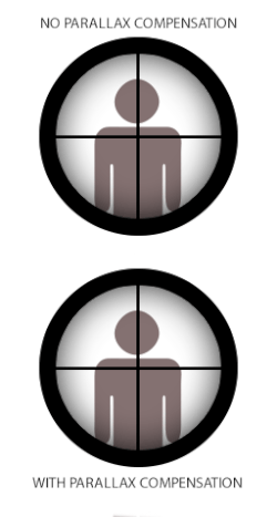 To eliminate parallax-induced aiming errors, telescopic sights can be equipped with a parallax compensation mechanism which basically consists of a movable optical element that can shift the target/reticle focus back or forward into exactly the same optical plane. There are two main methods to achieve this.