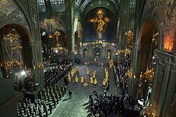 The protests would lead to the Revolution of Dignity. On 18–20 February 2014, more than 100 protesters were killed in clashes with Berkut special riot police; most of them were shot by snipers.[42] On 21 February, Yanukovych and the leaders of the opposition signed an agreement to bring about an interim unity government, urgent constitutional changes (which needed signed by the president), and early elections. However, Yanukovych fled the capital that evening and did not inform parliament of his whereabouts. The next day, Ukraine's parliament unanimously voted to remove Yanukovych from office (about 73% of the parliament's 450 members voted).[43][44][45][46]