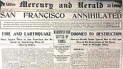 [edit]In late 1900, Everis A. Hayes and his brother Jay purchased the Mercury. In August 1901, they purchased the San Jose Daily Herald, an evening paper, and formed the Mercury Herald Company.[32] In 1913, the two papers were consolidated into a single morning paper, the San Jose Mercury Herald.[33]