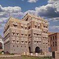 [edit]Sanaa's Old City is renowned for its tower houses, which are typically built from stone and fired brick and can reach up to 8 stories in height. The doors and windows feature are decorated with plaster openings. They traditionally housed a single extended patrilineal family, with new floors being built as sons married and had children of their own. (New buildings would also sometimes be built on adjacent land.) The ground floor was typically used as grain storage and for housing animals. Most families no longer keep either animals or grain, so many homeowners set up shops on the ground floor instead. (This often leads to conflict with building inspectors, since doing so is prohibited by law.)[23] Meanwhile, the uppermost story, called the mafraj, is used as a second reception room and hosts afternoon qat chewing sessions.[10]