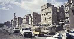 [edit]Generally, Sanaʽa is divided into two parts: the Old City District ("al-Qadeemah") and the new city ("al-Jadid.") The former is much smaller and retains the city's ancient heritage and mercantile way-of-living while the latter is an urban sprawl with many suburbs and modern buildings. The newer parts of the city were largely developed in the 1960s and onward when Sanaʽa was chosen as the republican capital.[22]
