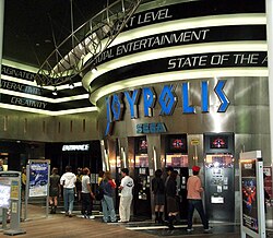 Beginning in 1994, Sega launched a series of indoor theme parks in Japan under a concept dubbed "Amusement Theme Park",[133] including Joypolis parks sited in urban Tokyo locations such as Yokohama and Odaiba.[134] A rapid overseas rollout was planned, with at least 100 locations across the world proposed to be opened by 2000,[22] however only two, Sega World London and Sega World Sydney, would ultimately materialise in September 1996 and March 1997, respectively.[135][136] Following on from difficulties faced in setting up theme parks in the United States, Sega established the GameWorks chain of urban entertainment centers in a joint venture with DreamWorks SKG and Universal Studios during March 1997.[137]