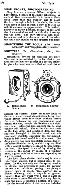 Entries in Cassell's Cyclopedia of Photography, 1911. The terminology diaphragm shutter has since fallen from common use.