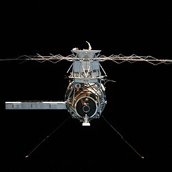 [edit]As of 2025,[update] Skylab has been the only space station operated exclusively by the United States. A permanent station was planned starting in 1988, but its funding was canceled and U.S. participation shifted to the International Space Station in 1993.