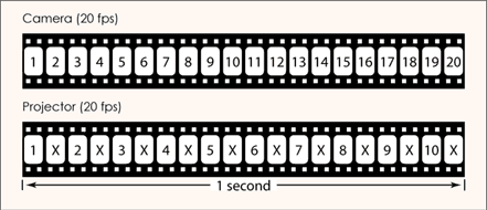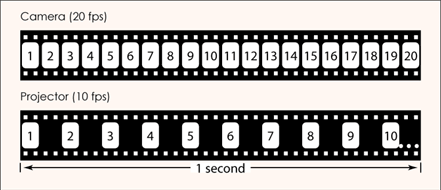 [edit]For purposes of making the above illustration readable, a projection speed of 10 frames per second (fps) has been selected (the 24 fps film standard makes slow overcranking rare but nevertheless available on professional equipment).[2]