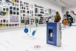 In 1979, Sony released the world's first portable music player, the Walkman, bundled with the MDL-3L2 headphones. This line fostered a fundamental change in music listening habits by allowing people to carry music with them and listen to music through lightweight headphones.[73][97] Originally used to refer to portable audio cassette players, the Walkman brand has been widely adopted by the company to encompass its portable digital audio and video players as well as a line of former Sony Ericsson mobile phones. In the case of optical disc players, the Discman brand was used until the late 1990s. In 2025, a model TPS-L2 cassette Walkman from 1979 was included in Pirouette: Turning Points in Design, an exhibition at the Museum of Modern Art featuring "widely recognized design icons [...] highlighting pivotal moments in design history."[96][98][99]