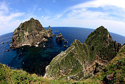 About 3,000 islands lie off the western and southern coasts of South Korea, the vast majority small and uninhabited. Jeju Island, the country's largest island, is about 100 kilometers (62 miles) off the southern coast of South Korea. Hallasan, a dormant volcano, is South Korea's highest point and reaches 1,950 meters (6,400 feet) above sea level. The easternmost islands of South Korea are Ulleungdo and the Liancourt Rocks (Dokdo/Takeshima), while Marado and Socotra Rock are the southernmost islands of South Korea.[129]
