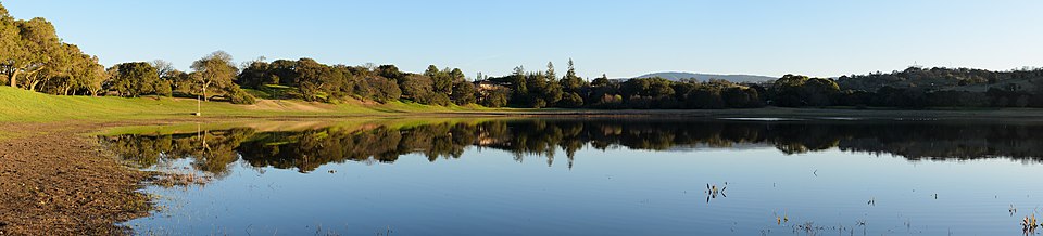 The central campus includes a seasonal lake (Lake Lagunita, an irrigation reservoir), home to the vulnerable California tiger salamander. As of 2012, Lake Lagunita was often dry and the university had no plans to artificially fill it.[76] Heavy rains in January 2023 refilled Lake Lagunita to up to 8 feet of depth.[77] Two other reservoirs, Searsville Lake on San Francisquito Creek and Felt Lake,[78] are on more remote sections of the founding grant.