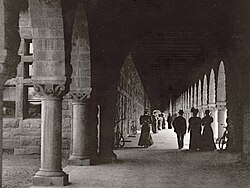 From an architectural perspective, the Stanfords sought to distinguish their university by emulating the style of English university buildings while also incorporating elements of local California heritage. They specified in the founding grant that the buildings should "be like the old adobe houses of the early Spanish days; they will be one-storied; they will have deep window seats and open fireplaces, and the roofs will be covered with the familiar dark red tiles."[45] The Stanfords also hired renowned landscape architect Frederick Law Olmsted, who previously designed the Cornell campus, to design the Stanford campus.[46]