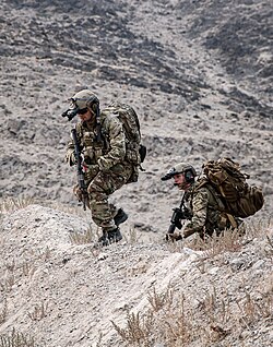 United States Army Rangers with the 75th Ranger Regiment are an elite special operations infantry force in the United States Army Special Operations Command, specializing in air assault and airborne infiltration methods. The three primary missions of the 75th Ranger Regiment are special operations raids, forcible entry operations, such as an airfield seizure to enable the Air Force to bring in more forces, and special reconnaissance.[70][71] As a special operations force, Army Rangers are generally better equipped than standard infantry, utilizing the FN SCAR rifle.[72]