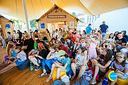 Assembly points for refugees have opened in every district of Poland.[68] Local authorities are providing free accommodation, food, and other necessary supplies.[69] Apart from that, a huge number of citizens and organisations are voluntarily offering assistance, free accommodation and other help.[70][71][72] Websites with information for refugees are also in Ukrainian.[73][74] The government is preparing legal changes that would simplify the employment of Ukrainians in Poland, since currently a working visa is required as Ukrainians are from outside of the EU.[75]