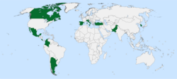 [edit]Along with the five permanent members, the Security Council of the United Nations has temporary members that hold their seats on a rotating basis by geographic region. Non-permanent members may be involved in global security briefings.[76] In its first two decades, the Security Council had six non-permanent members, the first of which were Australia, Brazil, Egypt, Mexico, the Netherlands and Poland. In 1965, the number of non-permanent members was expanded to ten.[77]