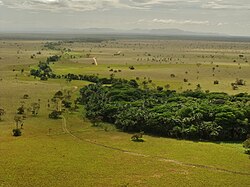 Los Llanos, or "the plains", are expansive sedimentary basins characterized by predominantly flat relief.[193] However, the eastern Llanos feature low-plateaus and the Unare depression, created through mesa erosion, adding diversity to the terrain. This region is subject to seasonal flooding, transforming the flat plains into a vast wetland during the rainy season. The relief here influences the region's unique ecosystems, including extensive grasslands and abundant wildlife.