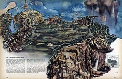 The Andean valleys, essentially agricultural, precociously populated but nowadays in loss of speed, do not confront the same problems of space occupation as the strongly urbanized and industrialized valleys of the central section of the Cordillera de la Costa. On the other hand, the unpopulated and practically untouched Guiana valleys are another category this area is called the Lost World (Mundo Perdido).[195]