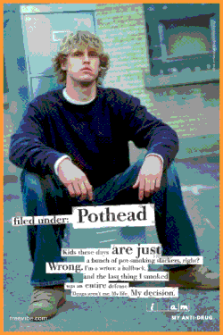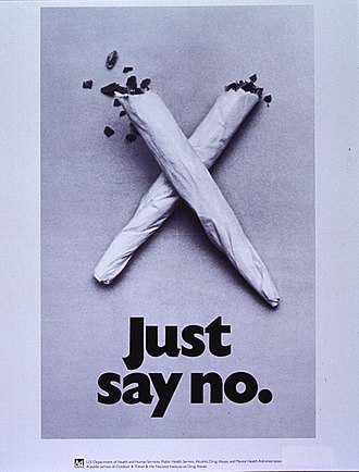 A U.S. government PSA from the Alcohol, Drug Abuse, and Mental Health Administration with a photo image of two marijuana cigarettes and a "Just Say No" slogan | |||||||