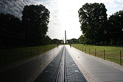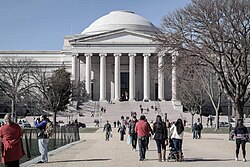 Washington, D.C., anchors the southern end of the Northeast megalopolis. As the seat of the U.S. federal government, the city is an important world political capital.[13] The city hosts buildings that house federal government headquarters, including the White House, U.S. Capitol, Supreme Court Building, and multiple federal departments and agencies. The city is home to many national monuments and museums, located most prominently on or around the National Mall, including the Jefferson Memorial, Lincoln Memorial, and Washington Monument. It hosts 177 foreign embassies and the global headquarters of the World Bank, International Monetary Fund, Organization of American States, and other international organizations. Home to many of the nation's largest industry associations, non-profit organizations, and think tanks, the city is known as a lobbying hub, which is centered on and around K Street.[14] It is also among the country's top tourist destinations; in 2022, it drew an estimated 20.7 million domestic[15] and 1.2 million international visitors, seventh-most among U.S. cities.[16]
