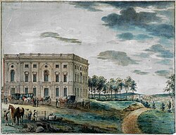 On August 24, 1814, during the War of 1812, British forces invaded and occupied the city after defeating an American force in the war's Battle of Bladensburg. In retaliation for acts of destruction by American troops in the Canadas, British troops set fire to government buildings in the city, gutting the U.S. Capitol, the Treasury Building, and White House in what became known as the burning of Washington. The damage of the city's burning could have been more extensive, but a storm forced the British to evacuate the city after just 24 hours.[33] Most government buildings were repaired quickly, but the Capitol, which was then still under construction, was not completed in its current form until 1868.[34]