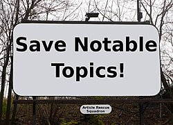 [edit]Wikiproject Article rescue squadron's main focus is on Wikipedia articles that are perceived as actually being notable that are going through Articles for deletion (AfD), which may: