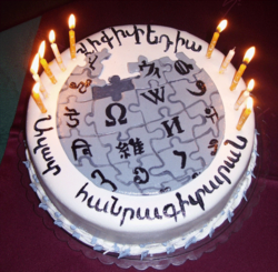 The French Wikipedia was created on or around 11 May 2001,[54] in a wave of new language versions that also included Chinese, Dutch, Esperanto, Hebrew, Italian, Portuguese, Russian, Spanish, and Swedish.[55] These languages were soon joined by Arabic[56] and Hungarian.[57][58] In September 2001, an announcement pledged commitment to the multilingual provision of Wikipedia,[59] notifying users of an upcoming roll-out of Wikipedias for all major languages, the establishment of core standards, and a push for the translation of core pages for the new wikis. At the end of that year, when international statistics first began to be logged, Afrikaans, Norwegian, and Serbian versions were announced.[60]