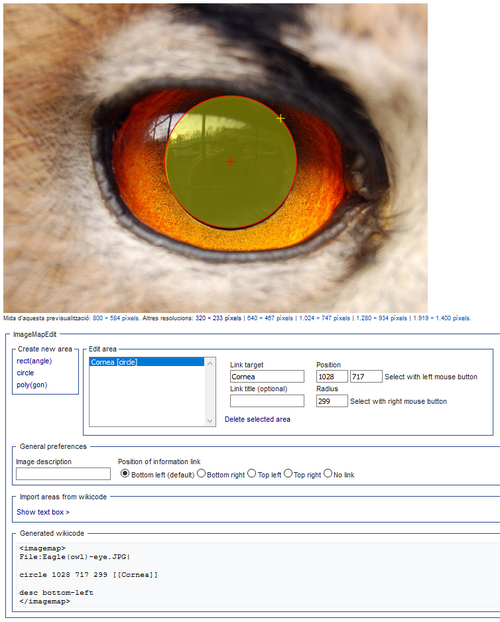 | Click the pupil {{small|(indicated by the mouse cursor)}} on the image of the eagle-owl eye.