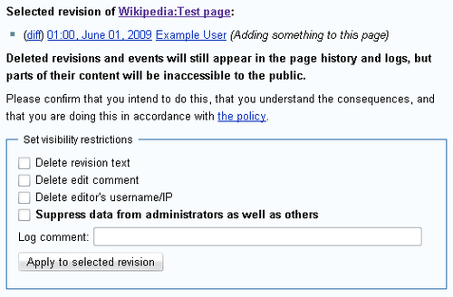 - mw:Help:RevisionDelete – MediaWiki help page.