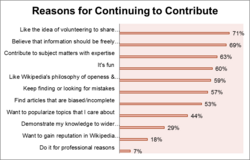 - ^ Cheng-Yu Lai; Heng-Li Yang (2014). "The reasons why people continue editing Wikipedia content – task value confirmation perspective". Behaviour & Information Technology. 33 (12): 1371–1382. doi:10.1080/0144929X.2014.929744. S2CID 29742930.