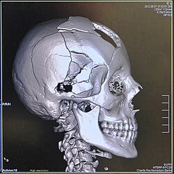 [edit]For the axial skeleton and extremities, CT is often used to image complex fractures, especially ones around joints, because of its ability to reconstruct the area of interest in multiple planes. Fractures, ligamentous injuries, and dislocations can easily be recognized with a 0.2 mm resolution.[71][72] With modern dual-energy CT scanners, new areas of use have been established, such as aiding in the diagnosis of gout.[73]