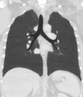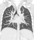 Bronchial wall thickening can be seen on lung CTs and generally (but not always) implies inflammation of the bronchi.[44]