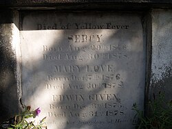 - ^ "Tour Stop 1 - Yellow Fever Victims - Tour - Oakland Cemetery - Shreveport - Louisiana - Founded 1847". www.oaklandcemeteryla.org. Archived from the original on 28 September 2018. Retrieved 28 September 2018.