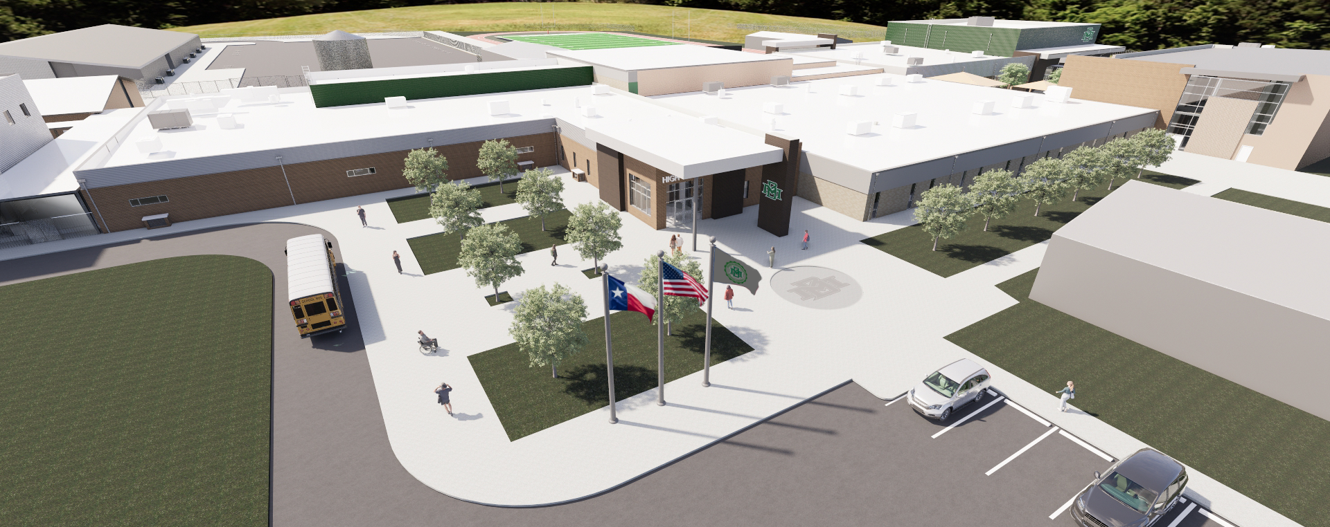 The Board of Trustees have called for a $78.8 million bond to provide safety and security improvements on all campuses: High School, Middle School, and Elementary including such items as video surveillance, door hardware, and secure main entry vestibules. High School projects include a new CTE facility, new weight rooms + locker rooms, competition gym, and Black Box theater supporting multiple programs and classes currently held in outlying buildings on the campus. Middle School projects include safety upgrades, and cafeteria renovations. Safety and playground improvements will be provided at the Karrer campus. Safety upgrades and the outdoor pavilion at the Krueger Campus will become enclosed and conditioned for physical education and multipurpose space.