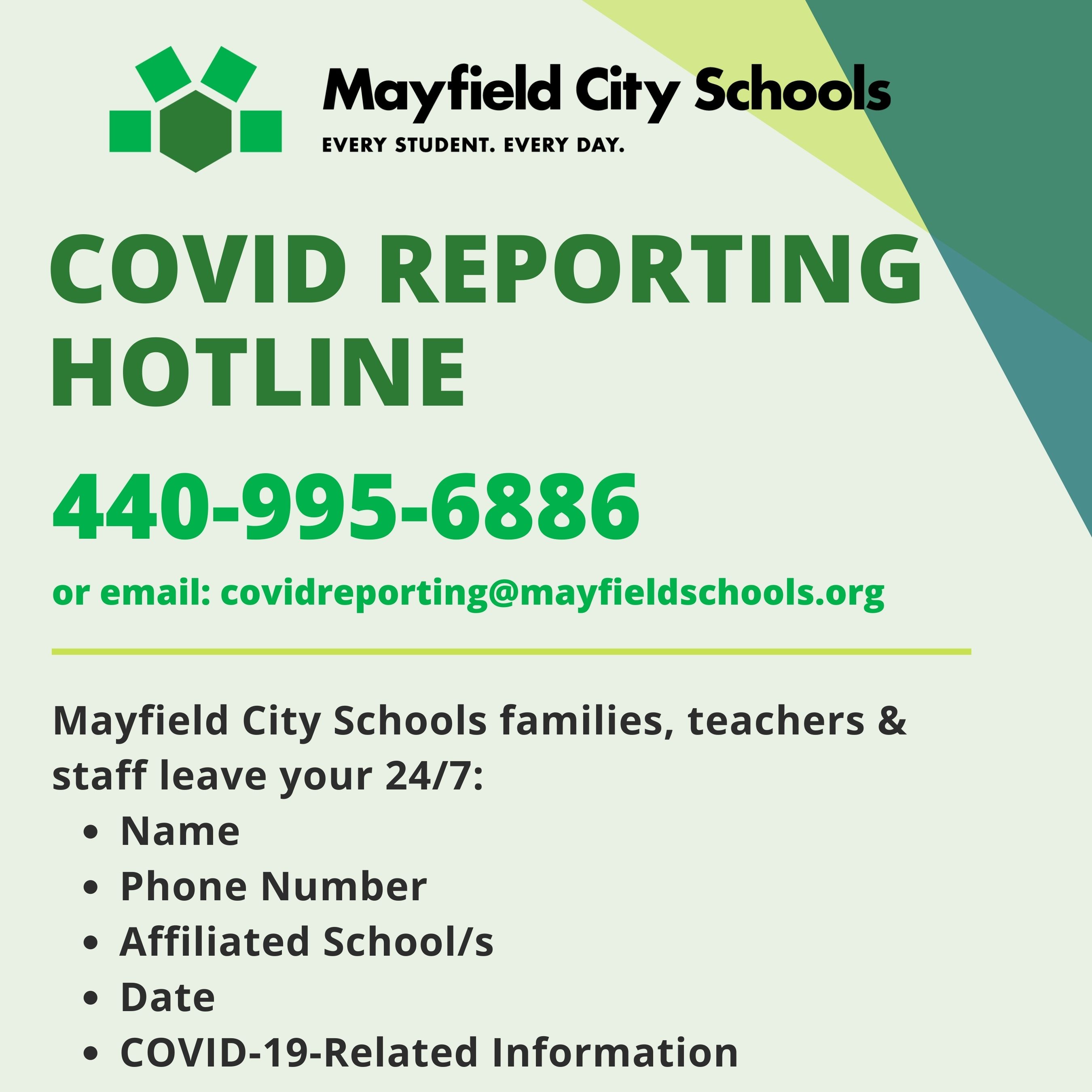 Our COVID-19 REPORTING HOTLINE for Mayfield City Schools