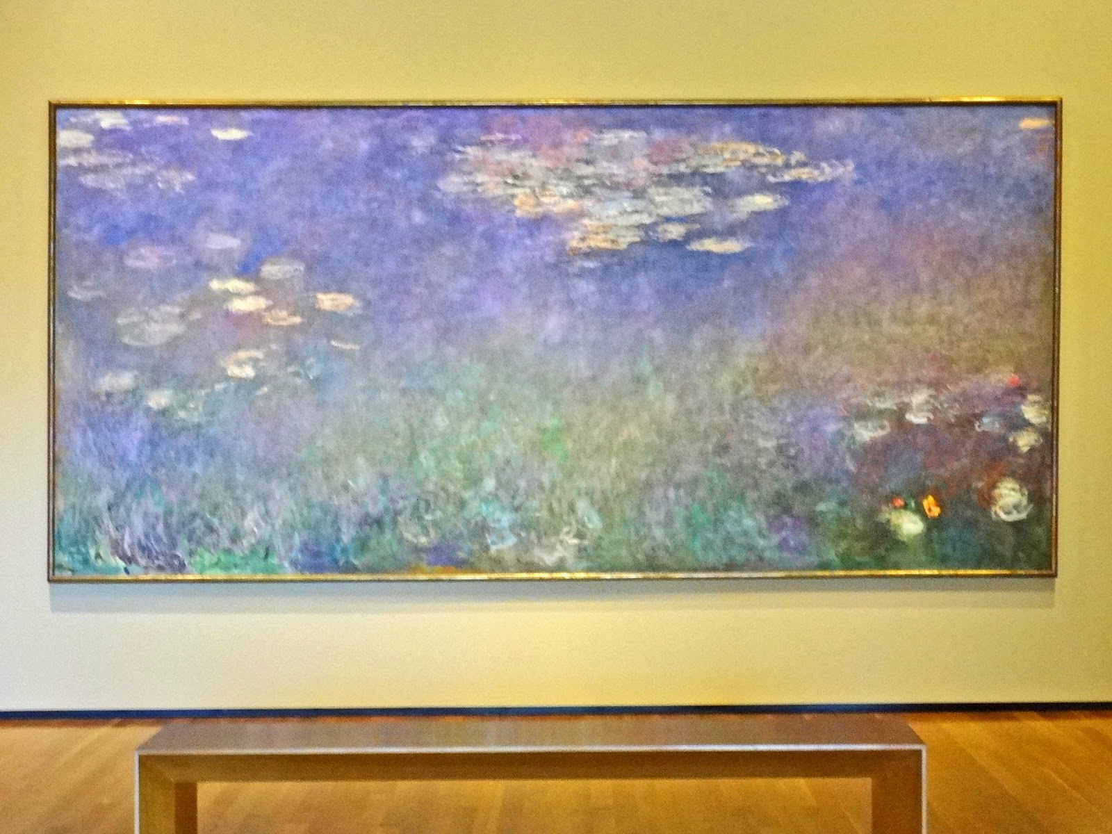 What do you think the artist was trying to capture? (The aim of his large Water Lilies paintings, Monet said, was to supply "the illusion of an endless whole, of water without horizon or bank." While his garden in Giverny, his water-lily pond, and the sky above are the subjects of this monumental triptych, his representation of them can be seen to verge toward abstraction. In the attempt to capture the constantly changing qualities of natural light and color, spatial cues all but dissolve; above and below, near and far, water and sky all commingle. In his enveloping, large-scale canvases Monet sought to create "the refuge of a peaceful meditation in the center of a flowering aquarium.")