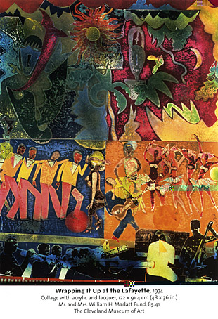 How could it be otherwise? When he was a boy, Bearden's family apartment was just across the street from the stage door of the Lafayette. Duke Ellington, Fats Waller, Ella Fitzgerald—they were all guests in the Bearden home. He lived only blocks from the Savoy Ballroom and for sixteen years worked in a studio above the fabled Apollo Theatre. Bearden saw jazz as a metaphor for the energy of life.