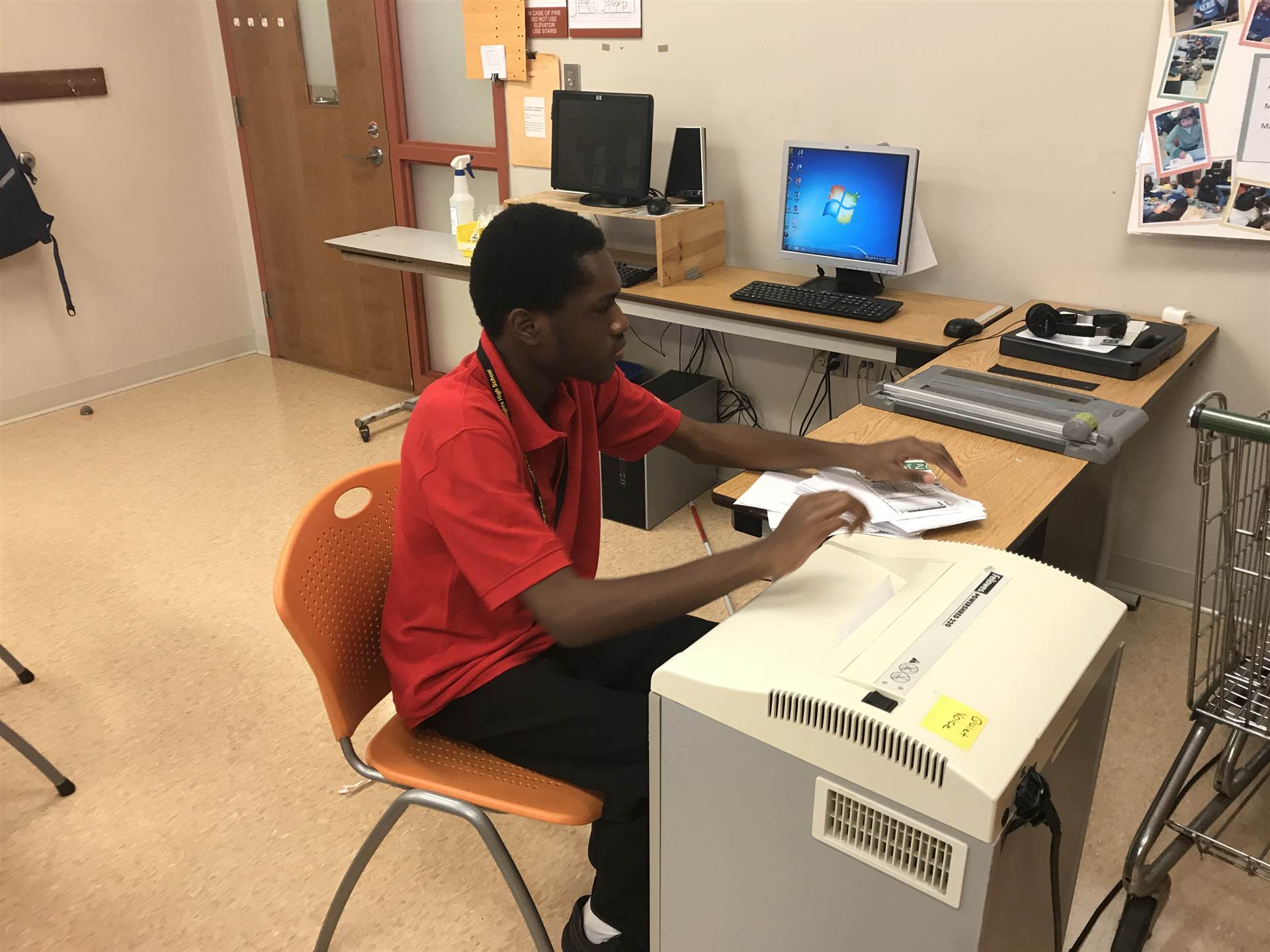 This program is designed to use both the classroom environment and an introduction to a community work experience. Our classroom ratio is 3 students to one staff. The IO2 program offers a community experience with recycling Mayfield HS, Lander Elementary, Board Office, and bus garage, as well as, CEVEC itself. The program also works at Sky Zone Highland Hts. 3 times a week to clean and do laundry and cleans Powerhouse Gym 3 times a week. In the classroom, the program has taken on a job for Cardinal Health cleaning 160 medical totes that are used in Cleveland Clinic hospitals. Other jobs in the classroom include packaging for Stinger Tee, packing and sorting for specific companies, as well as, folding menus for Hillcrest Hospital and cutting/shredding recycling paper to be used at animal recues.