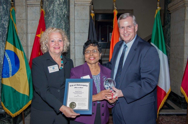 INDIANAPOLIS, IN (December 10, 2014) – Allisonville Elementary 5th grade teacher, Sandra Brown was named 2014 Volunteer of the Year by Mayor Ballard recently at the 2014 Indianapolis Sister Cities Celebration.