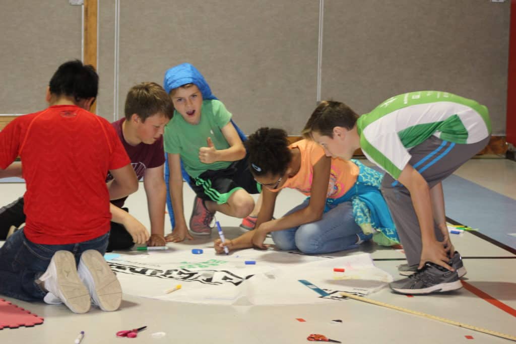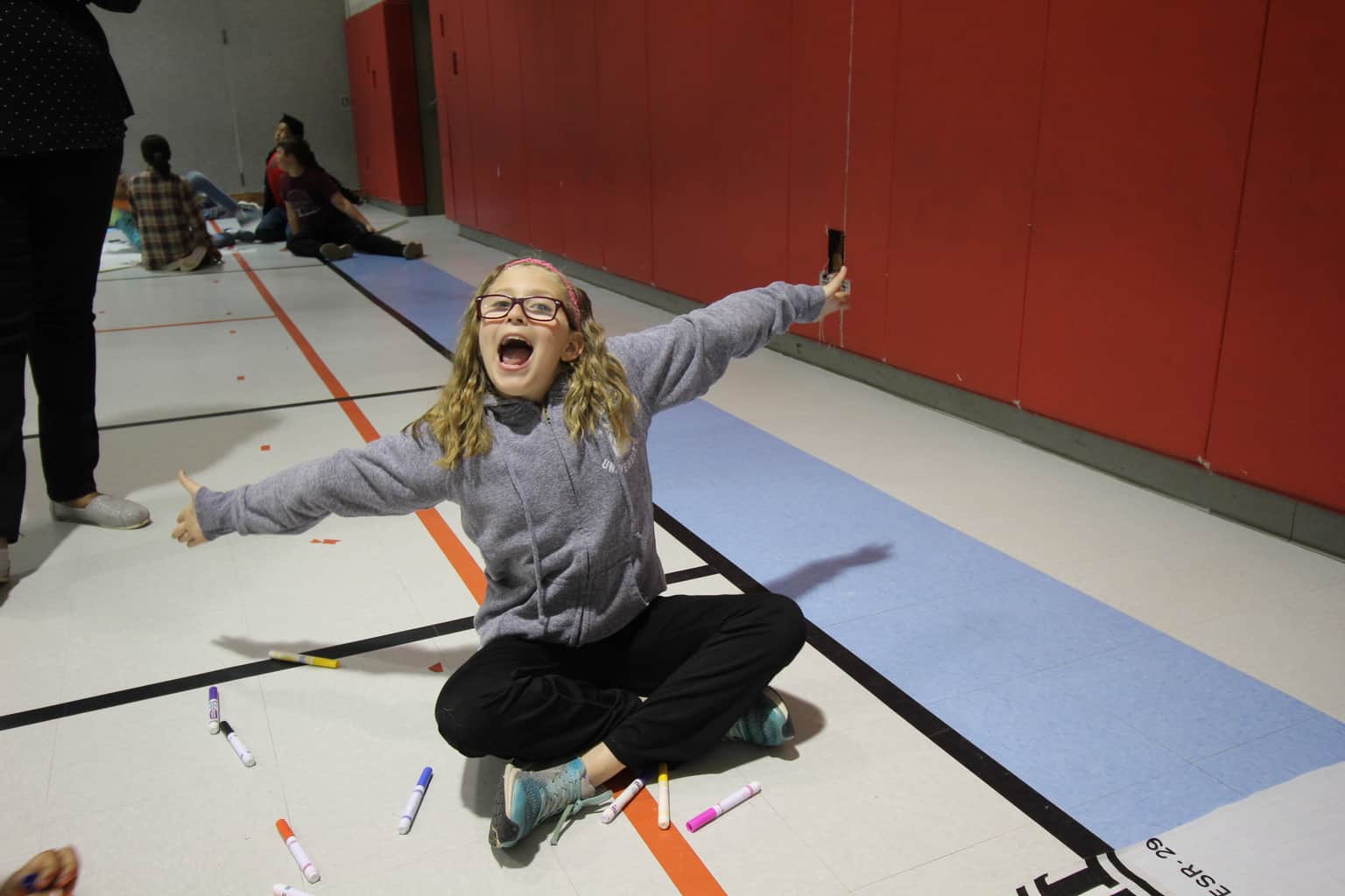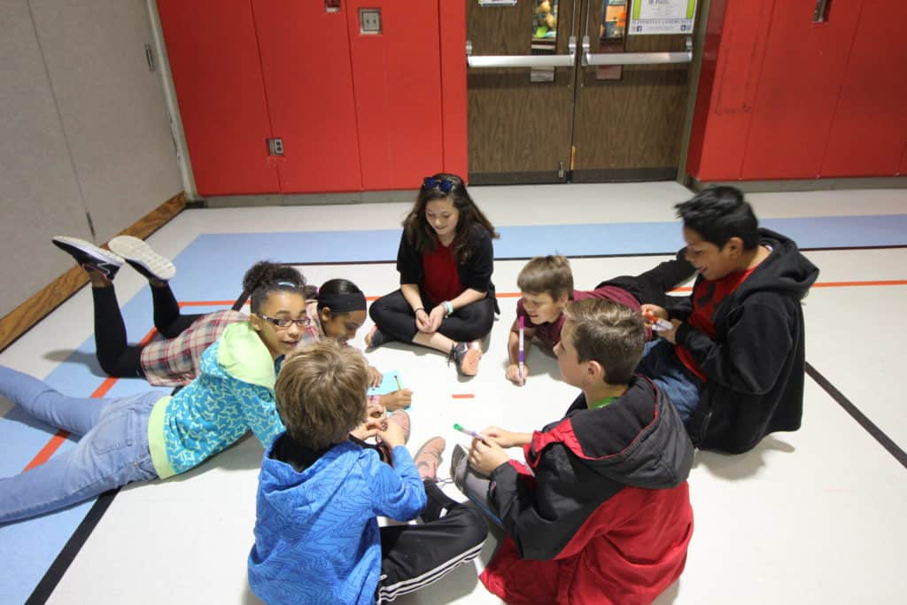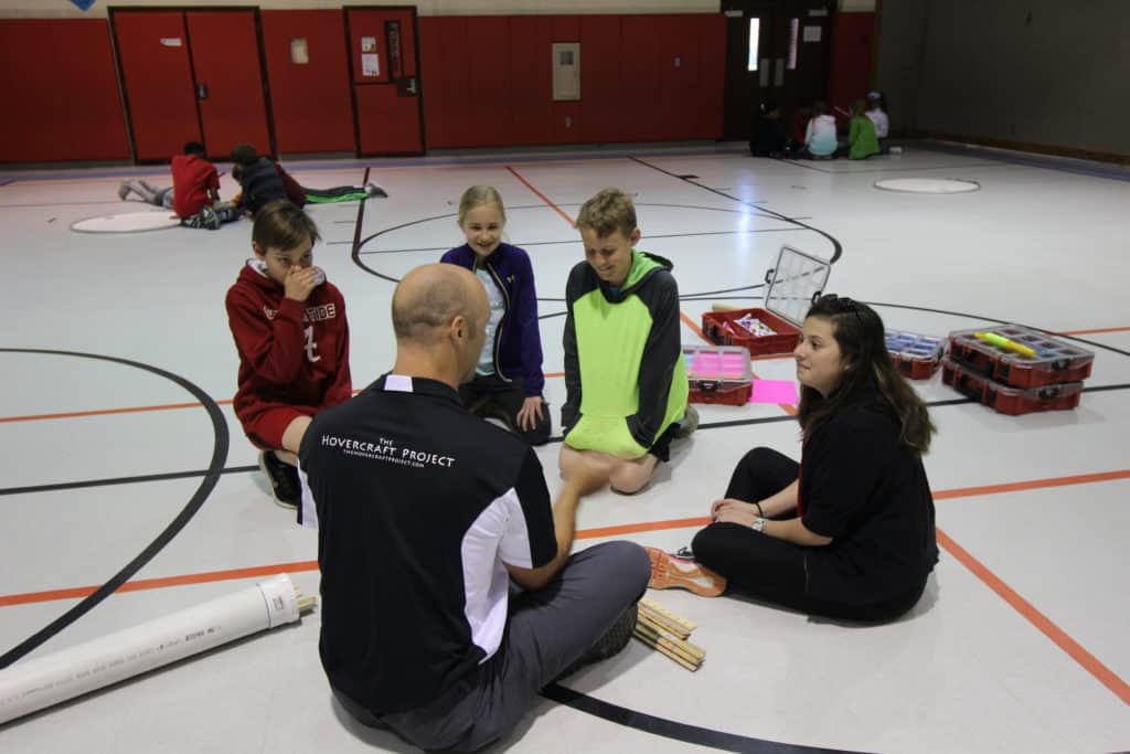 On the morning of April 30, students arrived in the gym around 8:45 to get started! The Hovercraft leader, Matthew Chase, spoke with them about the importance of failure, inquiry, and trying again. He also imparted a great lesson about how each of us is valuable, despite weaknesses and what other people think. It was a great lesson. He also told them they’d likely be frustrated as the day proceeded, but encouraged them to carry on. After that, each group created a name and a flag. My favorite was Dabberwocky – after our class love of dabbing and the poem “Jabberwocky” by Lewis Carroll.
