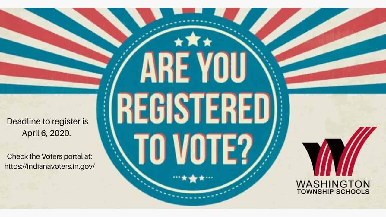 Your Vote. Your Voice! Make sure that you are registered to vote in the Indiana Primary on May 5, 2020. You must be registered by April 6. Visit the Indiana Voter Portal to register, check your registration status, confirm your polling place, and review what