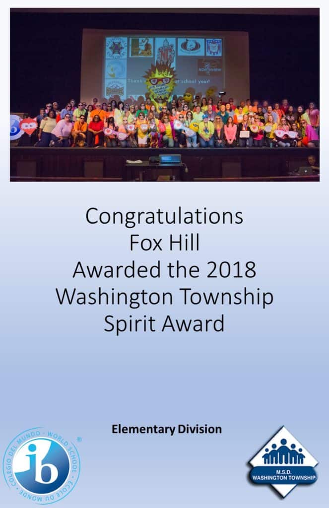 The Spirit Award was developed in 2015 and is awarded to the building staff who exemplifies the most team spirit during the MSDWT End of Year Celebration. In 2018 the award was expanded to include one elementary level building, and one secondary level building. The award includes a traveling trophy which is creatively added to (with decorations and embellishments) each year by the winning building.