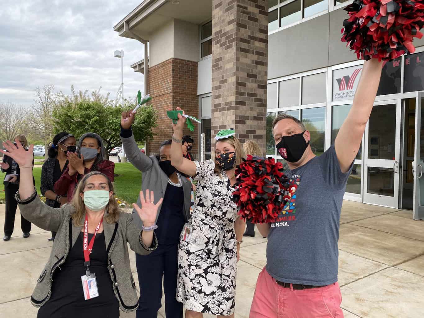 On April 28, 2021 we celebrated employees for their years of service at a drive-through style event, designed around Covid-19 protocols. Employees celebrating 10, 15, 20, 25, 30, 35, 40, and 45 years of service in Washington Township, drove through the Central Office portico where they were received with cheers and recognition gifts from the School Board and District Administration. Below are some photo memories captured at the event and a video listing the names of all those celebrated.
