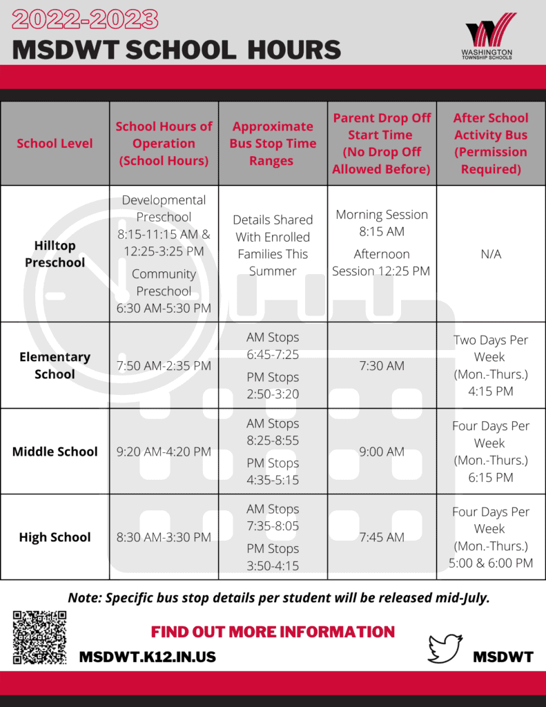 During the March 23 School Board Meeting, members voted to approve the proposed modifications to school hours and the 2022-2023 and 2023-2024 academic calendars. All families are highly encouraged to review the changes to the school calendars and school hours to allow ample planning time before next school year. We appreciate the input provided by all stakeholders during the year-long review process and look forward to serving our school community in alignment with child development research.