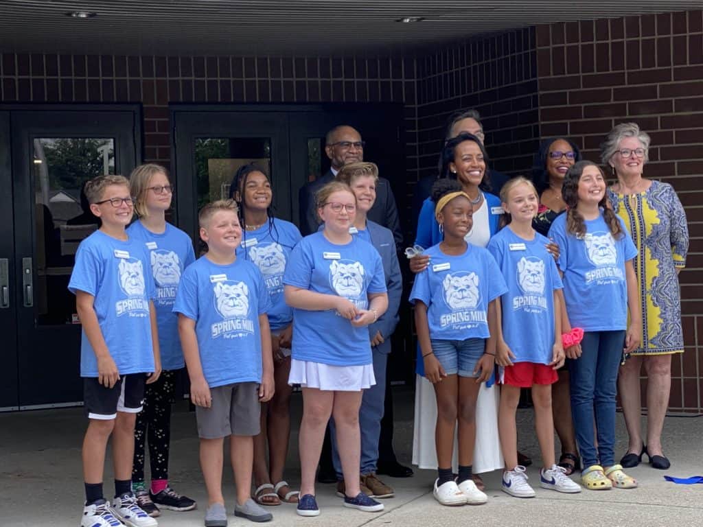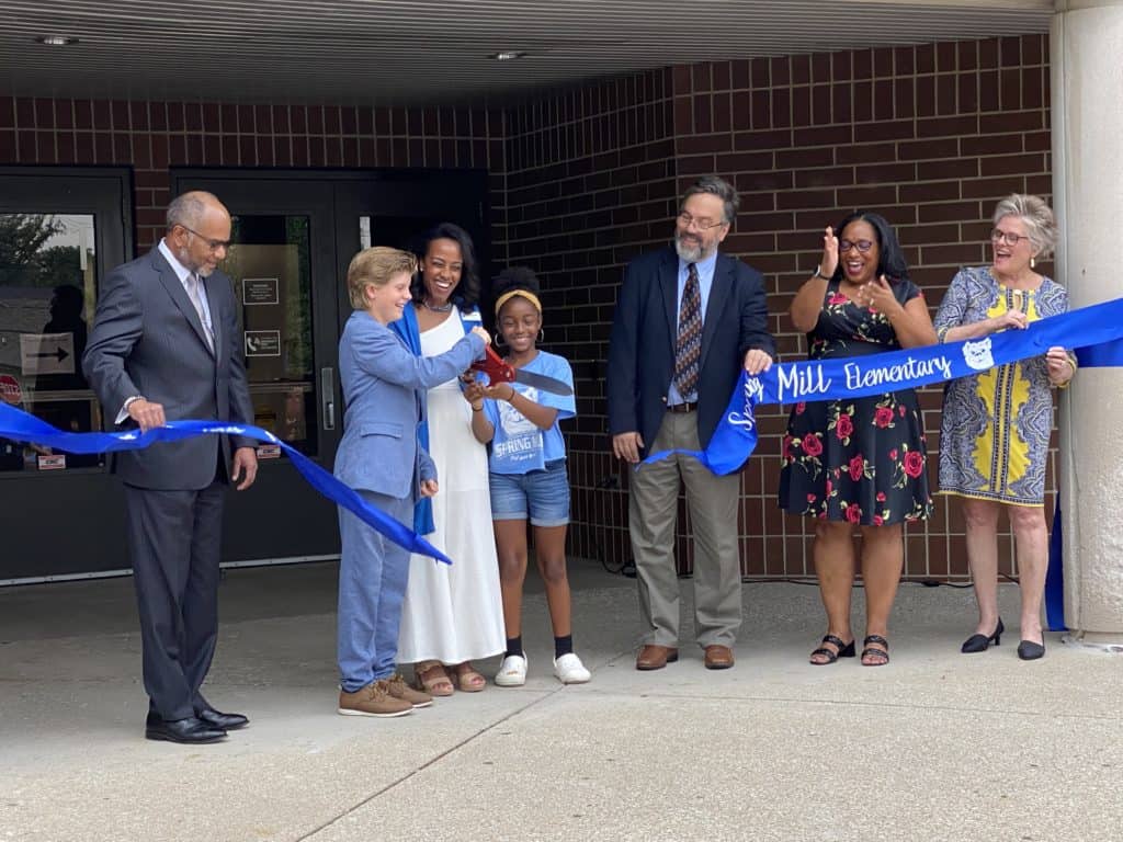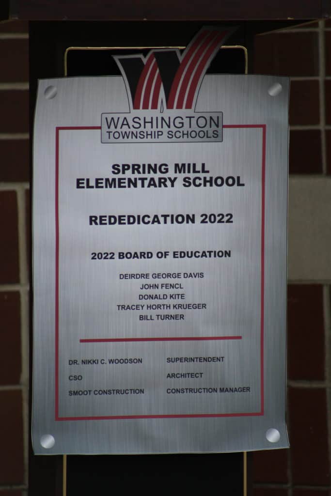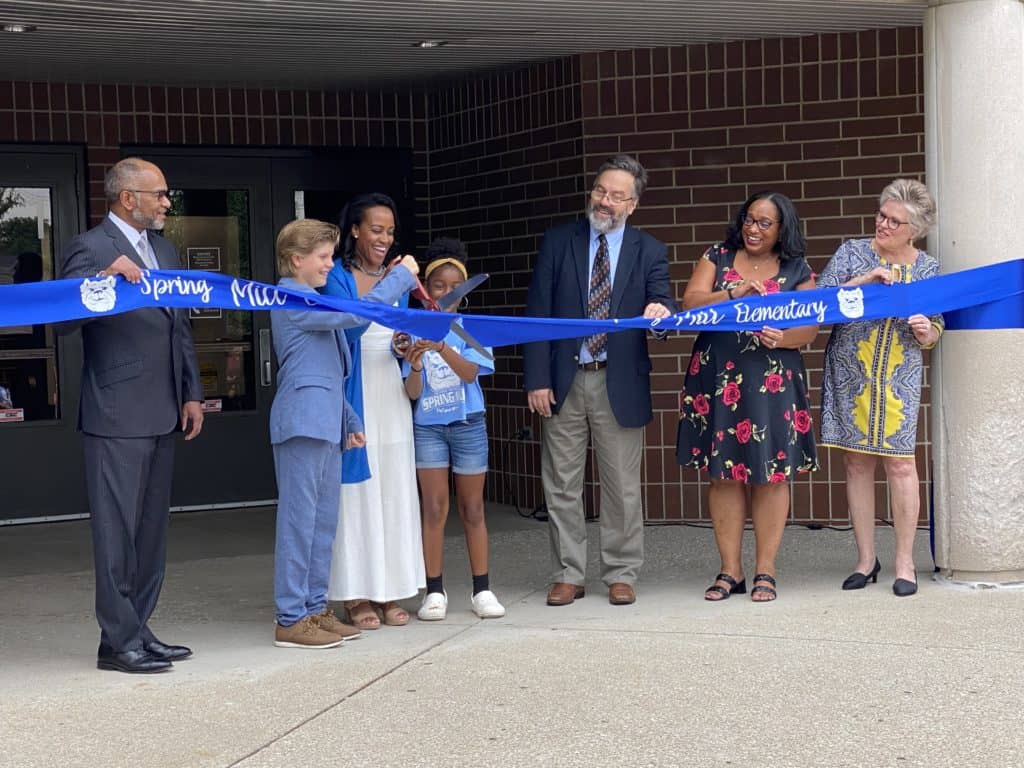 August 25, 2022 marked the rededication of Spring Mill Elementary. The Ribbon Cutting ceremony celebrated the extensive updates that have been made to this facility thanks to community support of the 2016 and 2020 referenda. In attendance were Spring Mill student ambassadors and families, Washington Township School Board President Mrs. Tracey Horth-Krueger and members of the Washington Township Board of Education, Superintendent Dr. Nikki Woodson, Director of Elementary Education Mr. Tim Blom, Director of Operations Ms. Angela Britain-Smith, Spring Mill Principal Ms. Kellée Merrit, and members of the Washington Township and Spring Mill teaching and student community.