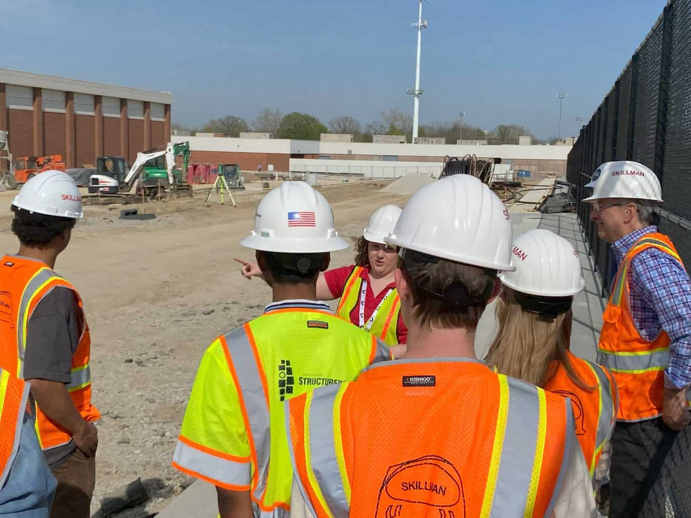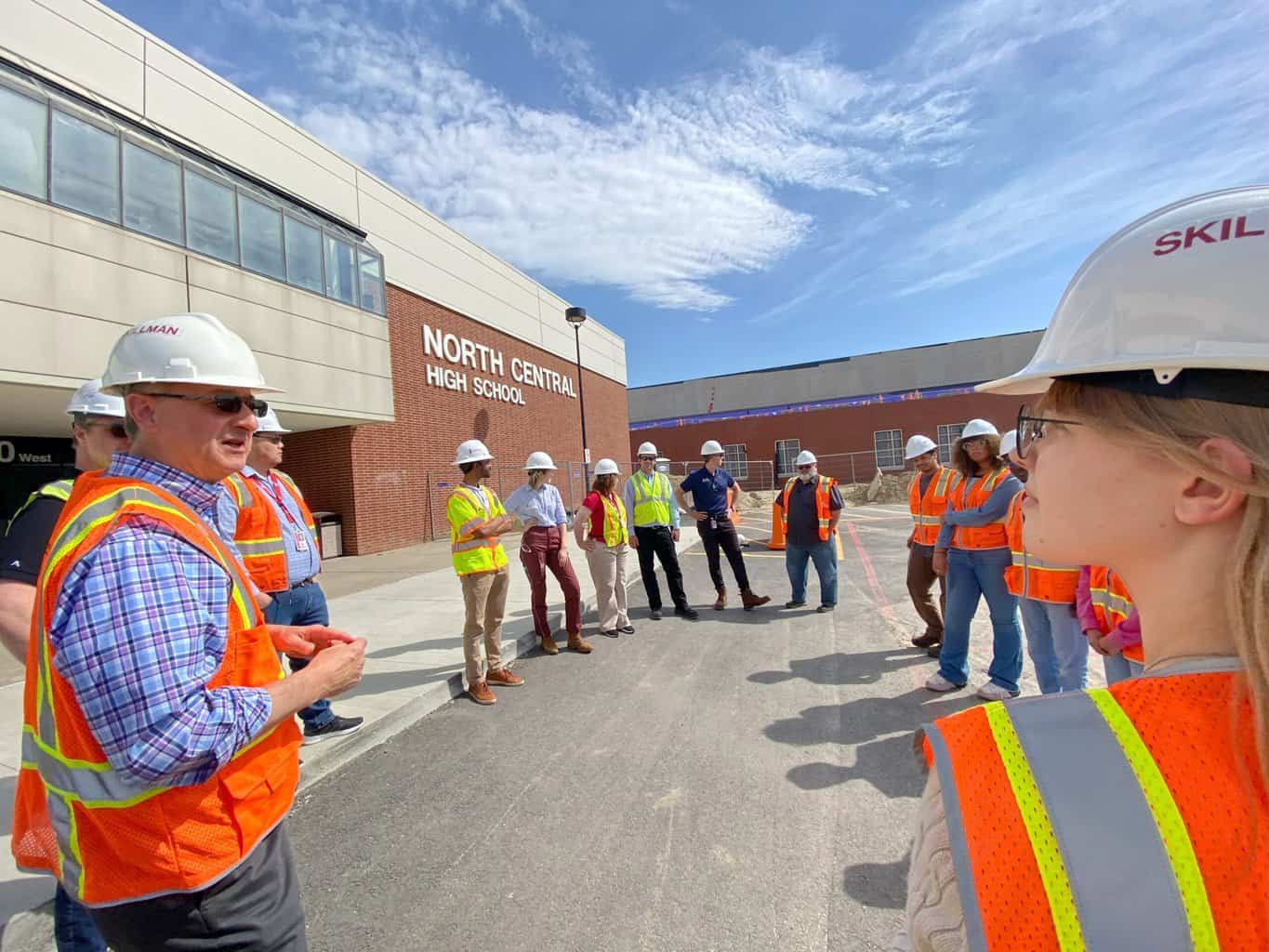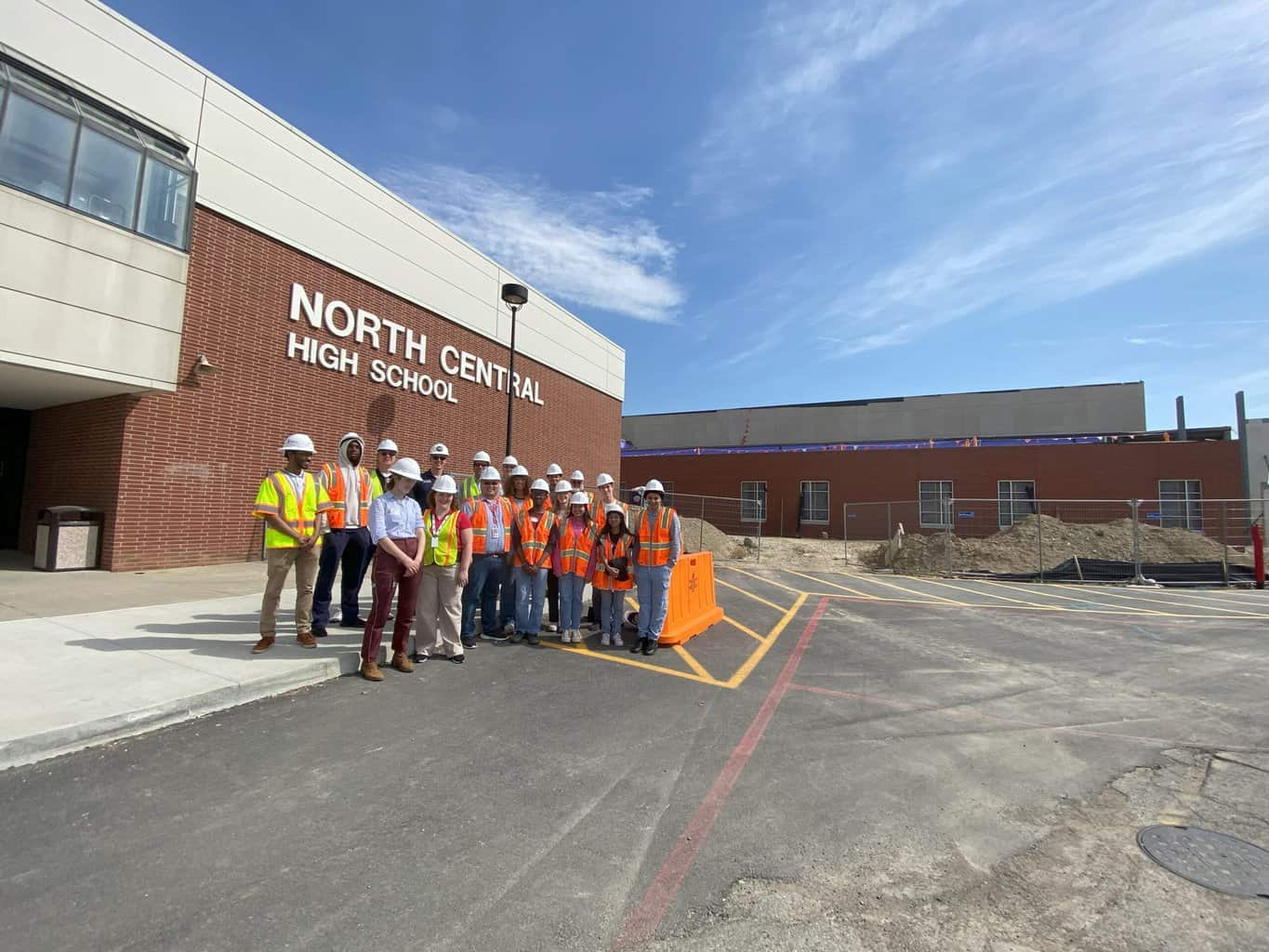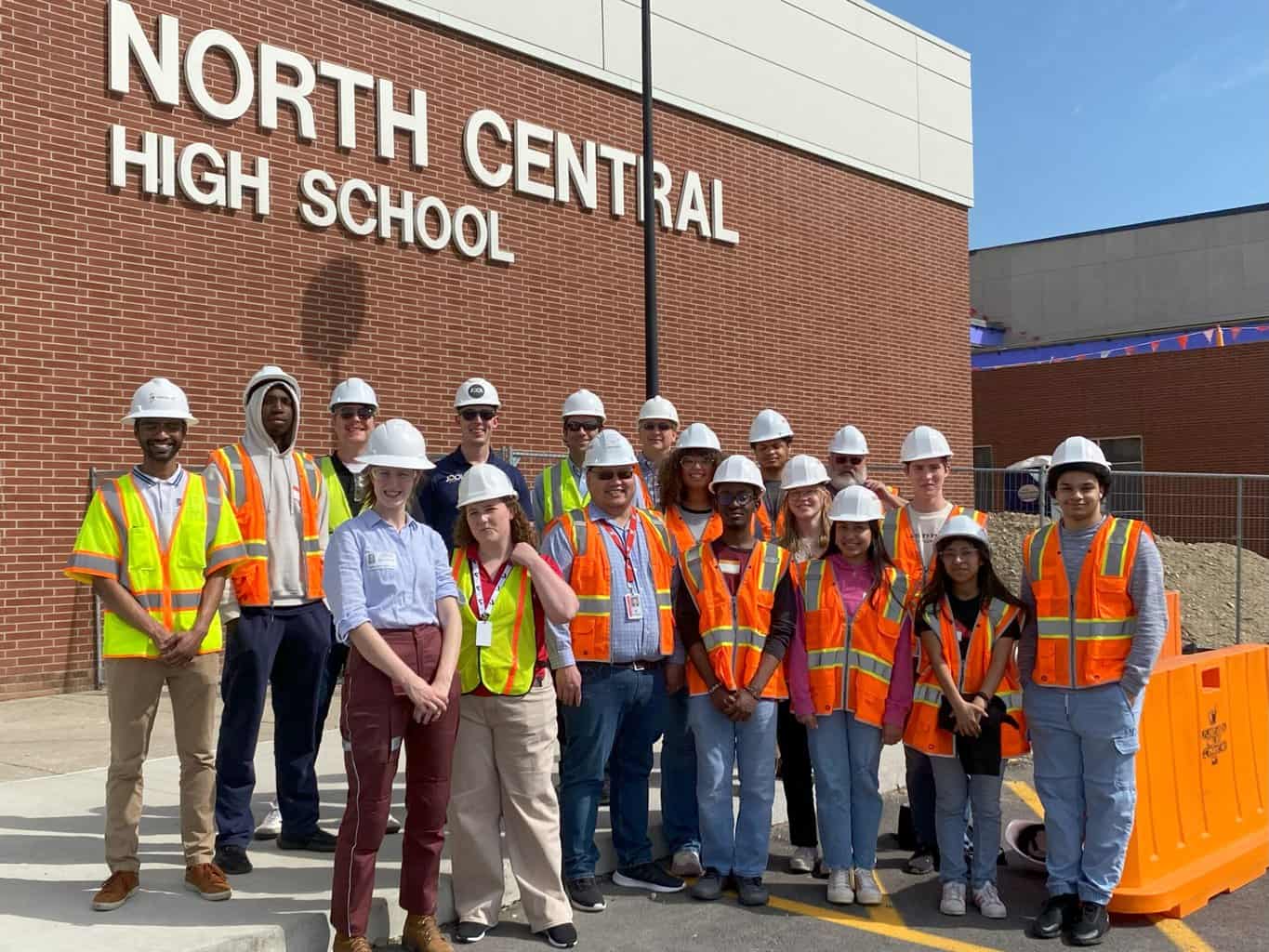 North Central High School Students in the Architecture, Construction and Engineering (ACE) Mentoring program recently had the unique experience of walking the Paul Loggan Fieldhouse construction site. Along with the ACE mentors and NCHS teacher sponsors, these students got the full tour of the site from industry professionals who are working on the site daily.